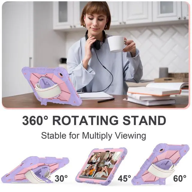 The 360 rotatable hand strap provides a firm grip for extended use, allowing you to switch between portrait and landscape orientations instantlywithout straining your wrist. Engineered for teachers, technicians, and workers who require mobility, on-the-go data entry, managing digital resources, or presenting materials while walking ^^ Heavy-Duty DefenseEngineered for max durability, this Galaxy A11+/A9+ case features a robust 3-layer defense system. A rigid inner shell maintains structural integrity, while a shock-absorbent silicone bumper disperses vibrations from impacts and falls. Effectively guards your A11+ tablet against accidental slips, drops, and daily wear.