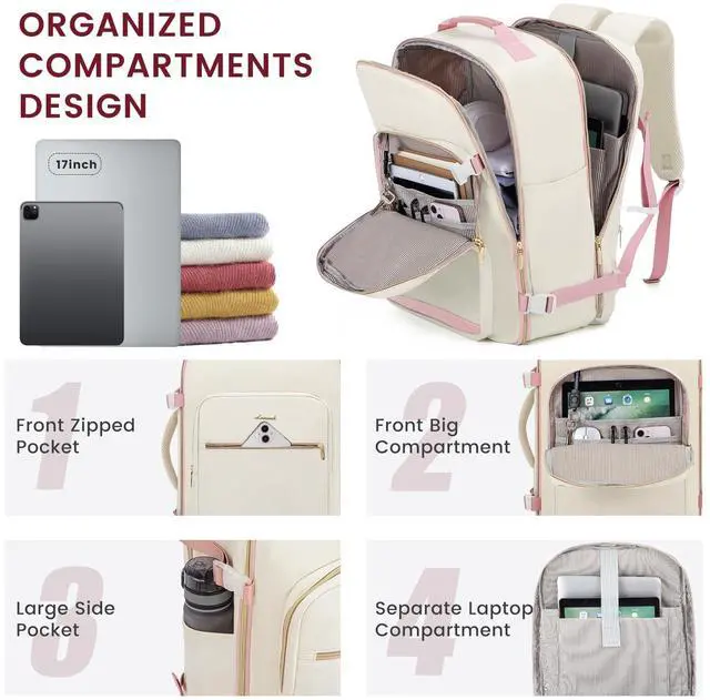 LOVEVOOK 40L Large Travel Backpack for Women Men, 17 Inch Carry on Backpack for Traveling on Airplane, Personal Item Travel Bag Airline Approved, Business Causal Weekender Backpack, Beige-Pink