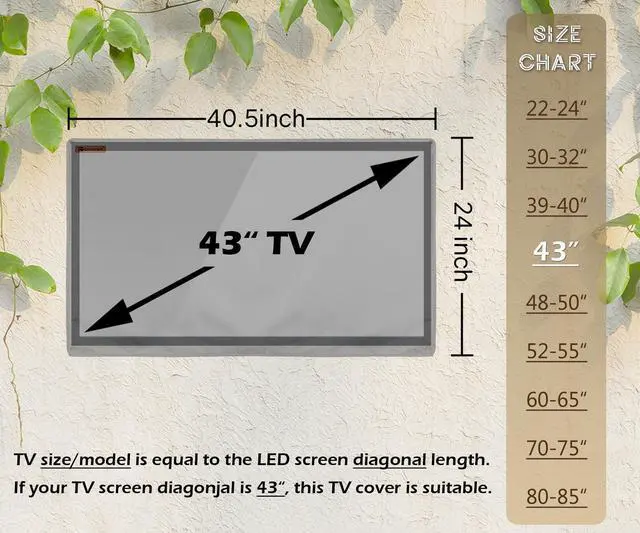 NOTE: If your TV has a soundbar, wide border, or thicker than usual, please measure the length and width of your TV's outer frame and compare it to the size of TV cover ( 40.5"W x 24"H x 4.5"D ) to ensure a proper fit.