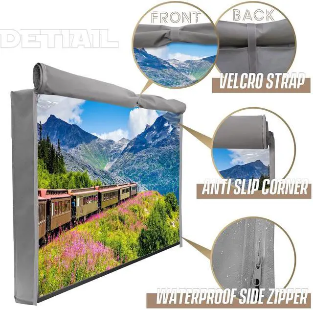 ^^ WATERPROOF MATERIAL: Made of high quality 600D oxford cloth, the outdoor TV enclosure is sturdy and durable enough to protect your TV from any damage or scratch outside. Dustproof and weatherproof, provide year-round protection for your television.