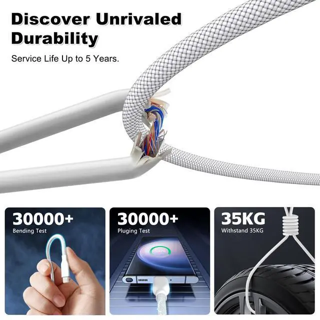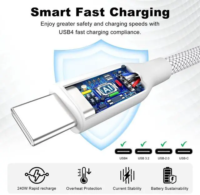 Ultra High Power Supply : HYairspy usb c cable fast charging supports PD3.1 and QC4.0 fast charging with a max 240W output, which can charge the iPhone 16 from 0% to 71% in 30 minutes, with full capability for all Thunderbolt 4, Thunderbolt 3, USB-C, and USB4 devices. It can quickly charge high-power devices such as laptops and monitors, and is equipped with an intelligent chip to ensure stable and reliable high-power charging, avoiding overheating or short circuit risks.