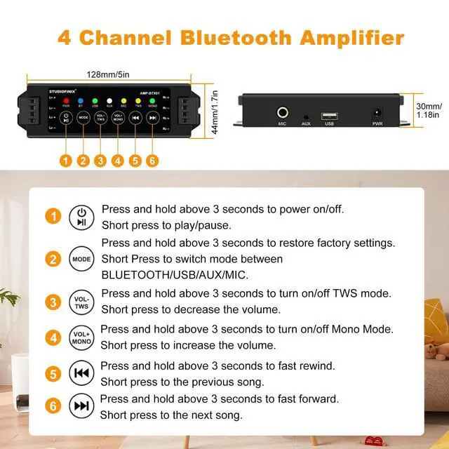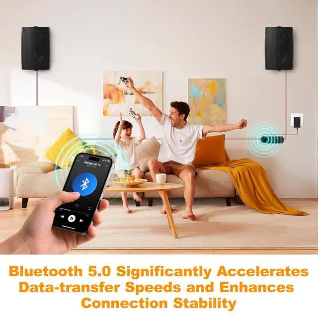 Infrared Control: Advanced Bluetooth 5.0 for fast, high-quality audio transmission and extended range. Infrared control for easy operation. Compatible with all previous Bluetooth versions. Connects to four speakers for enhanced sound in larger spaces. ^^