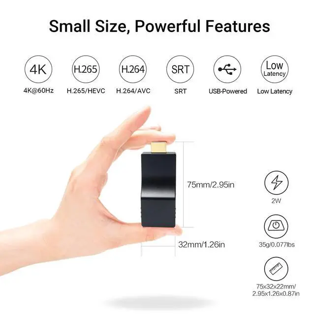 Easy & Neat Setup: This mini HDMI video decoder size is 75x32x22mm/35g and powered by USB. With Type-A male HDMI connector, the IP decoder can plug to the display HDMI port directly without HDMI cable, making the stream decoding system neat and tidy.