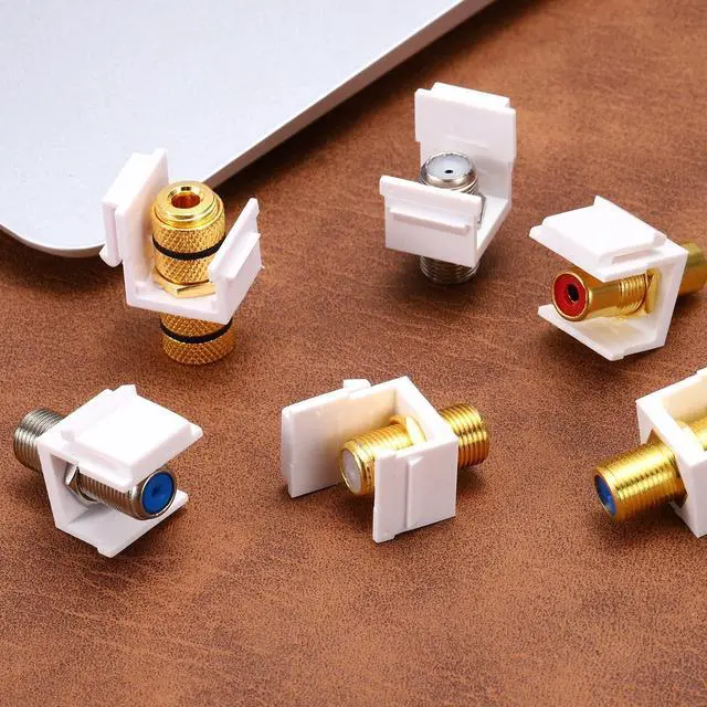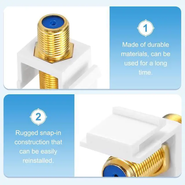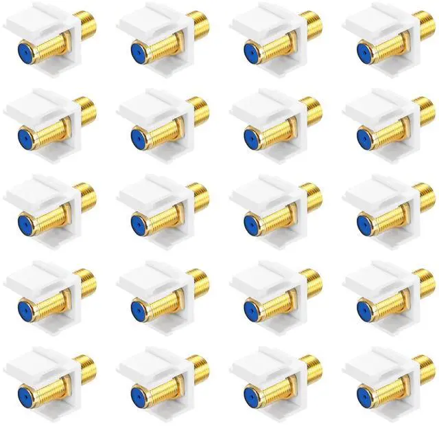 In the package of: 20 Pcs x F-Type RG6 Cable Extender ^^ The trapezoidal blades feature a rugged snap-in construction that can be easily removed and reinstalled when upgrading. Cable extender easily install into standard trapezoidal wall plates, patch panels, or surface boxes, and the reusable trapezoidal sockets can be easily disconnected and repositioned for temporary or long-term configurations. Coaxial cable connectors prevent audio and video signal loss without compromising signal transmission. ^^ Simply snap them into the wall panels ^^ Please pay attention to the product size before purchasing