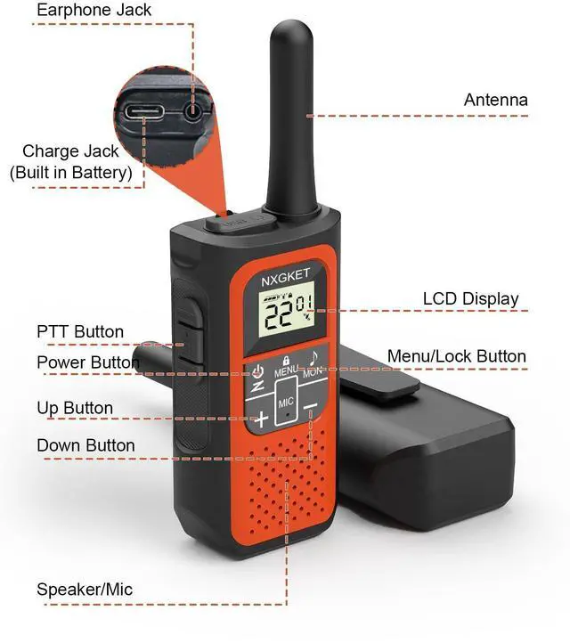 NXGKET WALKIE-TALKIES: The 4-pack walkie-talkies are compact, durable, and environmentally friendly, and also support many advanced features, such as an intelligent control system (auto squelch, auto memory, auto scan, auto power saving, low battery alarm), iVOX hands-free, drop-proof, 22 channels (122 privacy codes), compatible with FRS devices, NOAA services. NXGKET continuously updates and iterates new products to build bridges for communication between people ^^