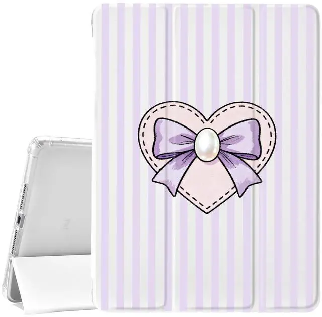 Sleep Wake up ]: Bow Pattern iPad Cover Built-in magnet, Sensitive Auto Wake/Sleep, More energy saving, extends your iPads batter. Slim Lightweight Tri-fold Stand with viewing and typing angle.