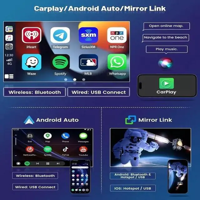 9.7 inch Vertical touchscreen Car radio Car Stereo Radio for Jeep Commander 2008-2011, for Compass 2009-2011, for Patriot 2009-2011, for GrandCherokee 2005-2011, for Liberty 2008-2012, for Wrangler/Unlimited 2007-2015. ^^ Support Wireless Carplay & Android AutoAndroid 14 for Jeep Commander 2008 2009 2010 2011 Radio Upgrade with wireless CarPlay and Android Auto functionality, there's no need to connect a USB cable. You can seamlessly use Maps, Music, and calls directly in your car. You can also sync data from mobile apps like GPS Maps, Spotify, and iTunes for seamless online access.
