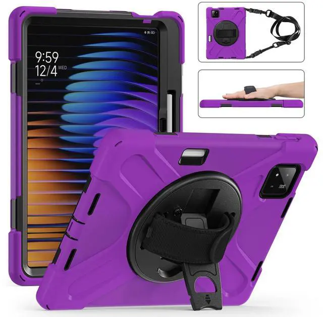 GooodiDEAR for Xiaomi Mi Pad 7/7 Pro Case, 11.2" Shockproof Cover with 360 Rotate Stand, Hand/Shoulder Strap, Pencil Holder, Purple