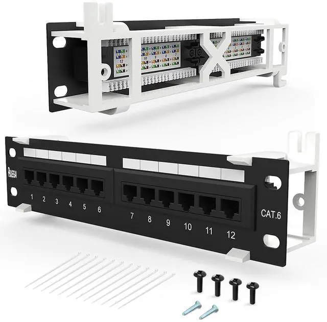 12 Port Capacity12 Port Cat6 Wall Mount Patch Panel, Compatible with Cat5e and Cat6. The TC-P12C6V 12-Port Cat6 Unshielded Wall Mount Patch Panel with Included 89D Bracket is backed. ^^ 10G Speed SupportProvides performance of up to 10Gbps speeds at 100m for 10/100/1000/ 2.5G /5GBASE-T connections, and 10Gbps speeds at 55m for 10GBASE-T connections. ^^ Fits Any Standard Rack Or Wall MountDesigned for a universal 19-inch rack, cabinet, or wall bracket that is 1U ( 1.75 inches) in height, providing a versatile solution for various installations. ^^ Easy To UseThe mini 12 port keystone patch panel supports 22 to 26 AWG stranded and solid wire.