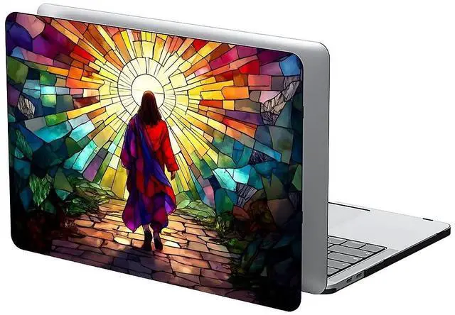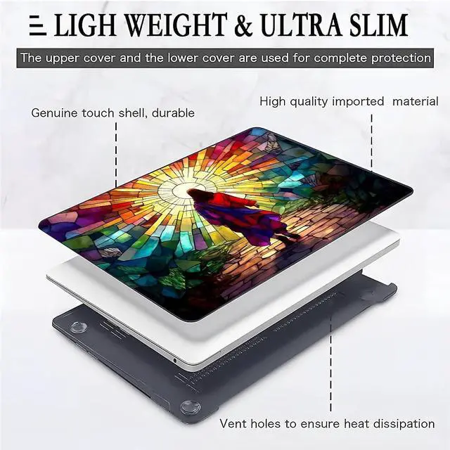 FKBRCL4U for MacBook Air 15 Inch Case,Black Case 2023 Version of M2 A2941/A3241 Plastic Hard Shell Computer Case Colorful Stained Glass Jesus Walking Pattern