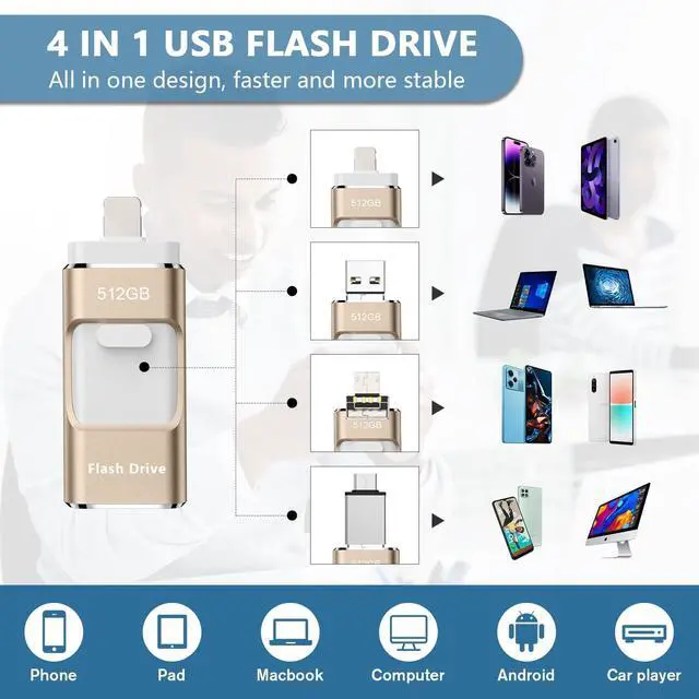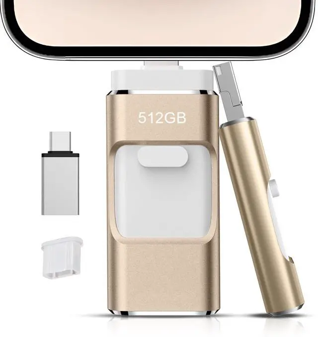 512GB Flash Drive[No App Required] Intended for Phone Tablet Androidphone and Computers, 4 in 1 Photo Stick for Phone Memory Storage Easily Backup Photos VideosGold