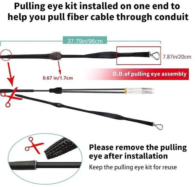 Industrial TPU material: The TPU Jacket features strong tensile strength, high abrasion resistance, Water Proof, Weather Proof, UV-resistant, and bending resistance. Suitable for Various Harsh Installation Environments such as roads & snowfields & construction sites. ^^ Pulling Eye Kit installed on one end: The pulling eye protects the connectors of the outdoor fibers and prevents the cables from twisting during the installation of conduits, ducts or risers. With this kit, you can pull this duplex jumpers through the conduit easily and quickly.