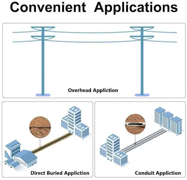 ^^ Data transmission: Our outdoor fiber optic cable is designed for high-speed data transmission and supports Ethernet connections up to 10G/40G/100G. OM4 outdoor armored fiber is compatible with a variety of fiber optic equipment, including switches and servers, making it suitable for indoor and outdoor network cabling in data centers, telecommunications systems, and more. ^^ Use for