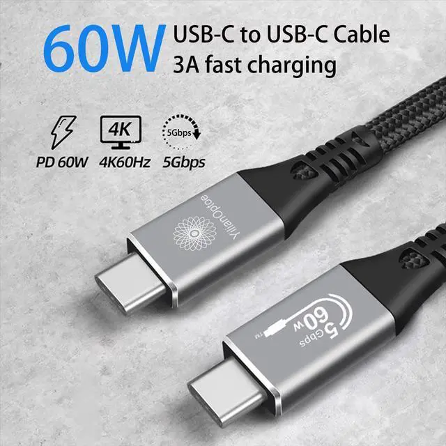 YilianOptoe USB C to USB C Cable 33ft,USBC 3.1 Gen1 5Gbps Data Transfer,60W Long Fast Charging Cable,4K@60Hz Display Cable,USB C Display Cord for MacBook Pro,iPad Pro,Monitor,Laptop