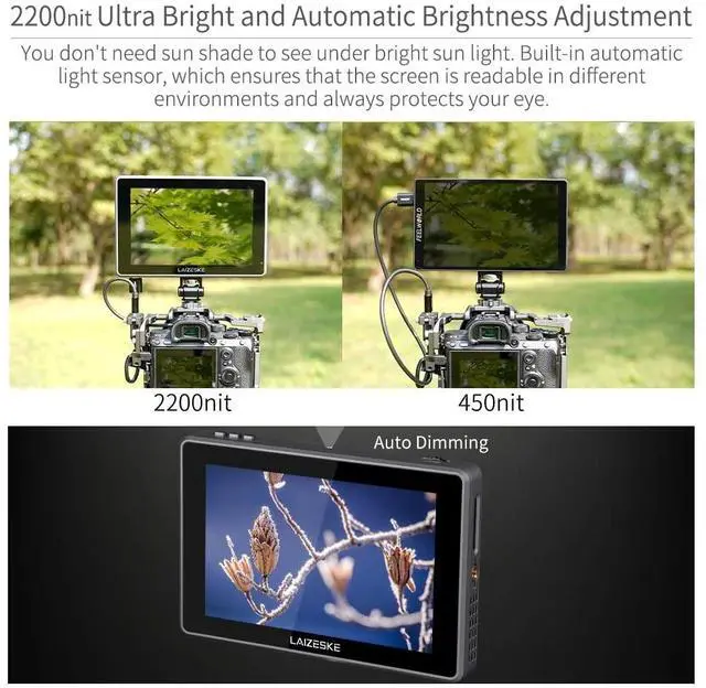 LAIZESKE L7S 7 Inch 4K HDMI Camera Field Monitor 2200nit Ultra Bright 3D Lut Touch Screen DSLR Monitor Aluminium Housing 1920x1200 IPS 3G SDI DC Output Waveform Light Sensor