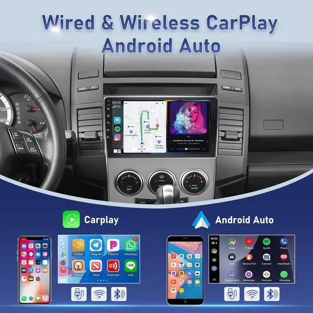 Carplay & Android Auto]: Wireless Mazda 5 carplay and Android Auto are accessible via WiFi and Bluetooth for quick, easy connection without the hassle of tangled wires. It supports map navigation, hands-free calls, music playback with clear audio output and voice control, enhancing both convenience and safety during driving ^^ [2+64GB & WIFI & Diverse UI Themes]: This Mazda 5 android radio adopts the latest Android operating system, with a 4-core processor, 2GB RAM and 64GB ROM, ensuring a faster and smoother experience. After connecting to WiFi, you can easily install and switch between apps like maps, music and calls, similar to using a mobile phone. Various UI themes are available for customizing the homepage ^^ [GPS
