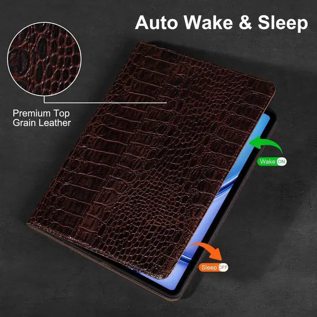 Gexmil Genuine Leather Case for iPad Air 13 Inch M4/M3/M2 (2026/2025/2024),Premium Leather Smart Folio Cover, Auto Sleep/Wake,Adjustable Stand, Anti-Slip,Brown Crocodile