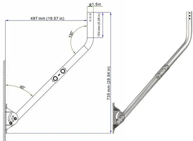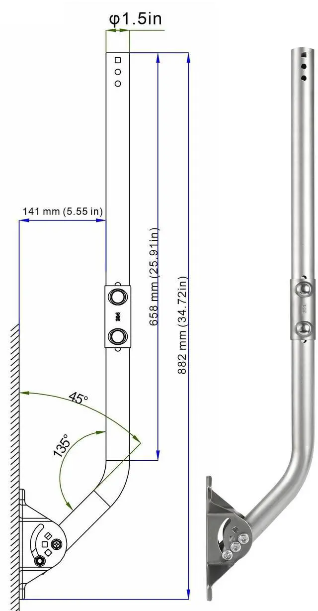 Reversible Design: Features an outer diameter of 1.5" and an arm length of 35". Both ends of the J-pole mount are usable, offering flexible wall standoff distance adjustments. For extended reach, add a 16.5" mast extension (sold separately) to increase vertical height and horizontal clearance, optimizing signal reception and minimizing obstructions.