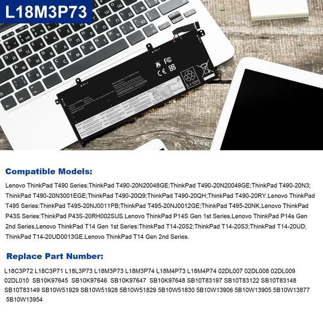 • COMPATIBLE MODELS: for Lenovo ThinkPad T490 (Type 20N2 20N3 20Q9 20QH 20RY 20RX) series; for Lenovo ThinkPad T495 (Type 20Q9 20QH 20NJ 20NK) series; for Lenovo ThinkPad P43S (Type 20RH 20RJ) series; for Lenovo ThinkPad P14s Gen 1 (type 20S4 20S5 20Y1 20Y2) Series; for Lenovo ThinkPad P14s Gen 2 (Type 20VX 20VY 21A0 21A1) Series; for Lenovo ThinkPad T14 Gen 1 (type 20UD 20UE 20S0 20S1 20S2 20S3) Series; for Lenovo ThinkPad T14 Gen 2 (Type 20W0 20W1 20XK 20XL) Series