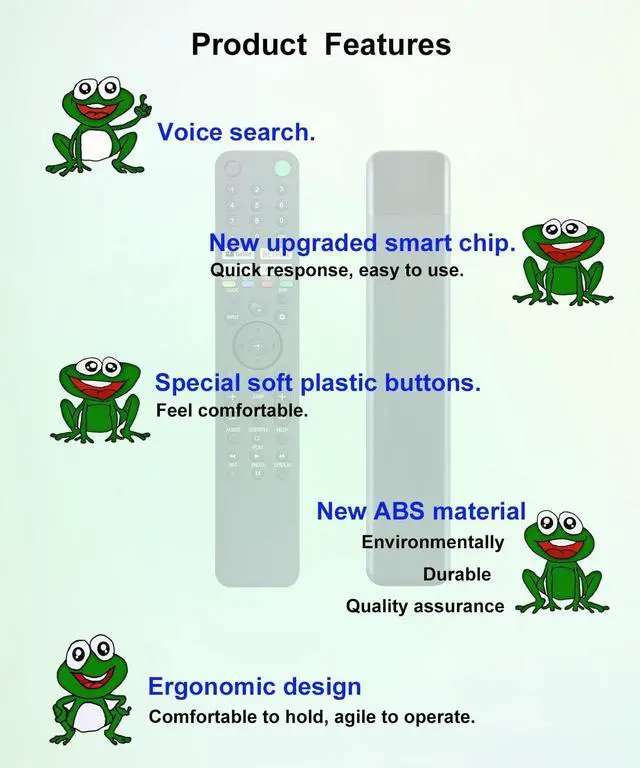 Replacement TV voice remote control compatible for Sony Bravia 4K 8K HDR OLED Ultra HD Smart TV Models. TV voice remote control universal for Sony Bravia Smart TV All 4K 8K Bravia Ultra HDR OLED TV Series replacement. Some Suitable models are listed below: Replacement smart TV Voice remote control universal for Sony XBR65A8H XBR75Z8H XBR85Z8H KD65X750F KD43X80J KD43X85J KD50X80J KD50X85J KD55X75K KD55X79J KD55X80CJ KD55X80J KD55X85J KD65X75K KD65X79J KD65X80CJ KD65X80J KD65X85J KD75X79J KD75X80CJ KD75X80J KD75X81J KD75X85J KD85X85J KD85X91CJ KD85X91J XR100X92 XR50X90J XR50X94J XR55A80CJ XR55A80J XR55A84J XR55A90J XR55X90CJ XR55X90J XR55X94J XR65A80CJ XR65A80J XR65A84J XR65A90J XR65X90CJ XR65X90J XR65X94J XR65X95J XR75X90CJ XR75X90J XR75X94J XR75X95J XR75Z9J XR77A80CJ XR77A80J XR77A84J XR83A90J XR85X95J XR85Z9J KD75X80J XBR43X800H XBR49X800H XBR49X950H XBR49X950H/A XBR55A8H XBR55X800H XBR55X81CH XBR55X900H XBR55X950G XBR55X950G/A XBR65A8H XBR65X800H XBR65X81CH XBR65X900H XBR65X950G XBR65X950G/A XBR65X950H XBR75X800H XBR75X81CH XBR85X81CH XBR85X850G XBR85X900H XBR98Z9G RMFTX520U RMFTX520B RMFTX621E RMFTX621U RMFTX520P RMFTX500U RMFTX600U RMFTX600E RMFTX500P RMF-TX520U RMFTX520B RMF-TX621E RMF-TX621U RMF-TX520P RMF-TX500U RMF-TX600U RMF-TX600E RMF-TX500P XBR-65A8H XBR-75Z8H XBR-85Z8H KD-65X750F KD-43X80J KD-43X85J KD-50X80J KD-50X85J KD-55X75K KD-55X79J KD-55X80CJ KD-55X80J KD-55X85J KD-65X75K KD-65X79J KD-65X80CJ KD-65X80J KD-65X85J KD-75X79J KD-75X80CJ KD-75X80J KD-75X81J KD-75X85J KD-85X85J KD-85X91CJ KD-85X91J XR-100X92 XR-50X90J XR-50X94J XR-55A80CJ XR-55A80J XR-55A84J XR-55A90J XR-55X90CJ XR-55X90J XR-55X94J XR-65A80CJ XR-65A80J XR-65A84J XR-65A90J XR-65X90CJ XR-65X90J XR-65X94J XR-65X95J XR-75X90CJ XR-75X90J XR-75X94J XR-75X95J XR-75Z9J XR-77A80CJ XR-77A80J XR-77A84J XR-83A90J XR-85X95J XR-85Z9J KD-75X80J XBR-43X800H XBR-49X800H XBR-49X950H XBR-49X950H/A XBR-55A8H XBR-55X800H XBR-55X81CH XBR-55X900H XBR-55X950G XBR-55X950G/A XBR-65A8H XBR-65X800H XBR-65X81CH XBR-65X900H XBR-65X950G XBR-65X950G/A XBR-65X950H XBR-75X800H XBR-75X81CH XBR-85X81CH XBR-85X850G XBR-85X900H XBR-98Z9G Bravia Ultra HDR OLED Smart TV etc.