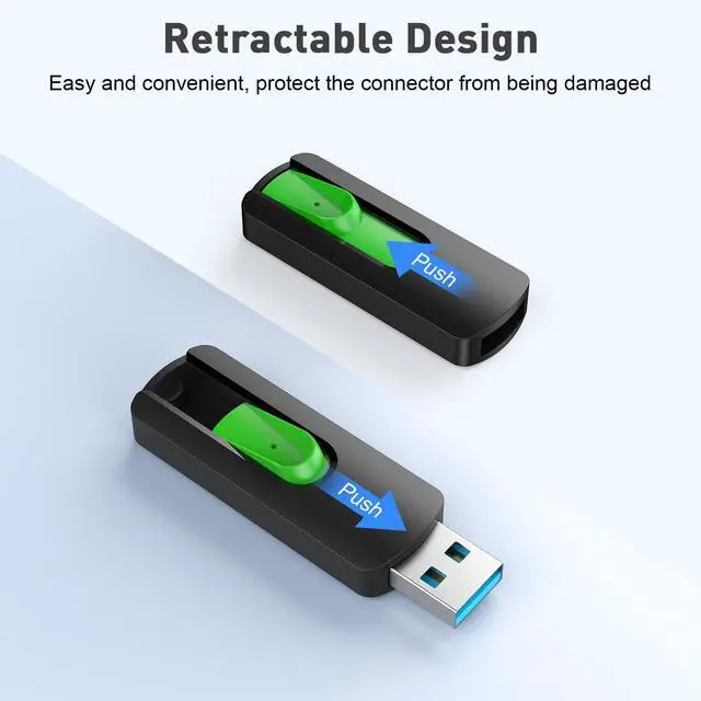 Speed Transmission: With USB 3.0 interface, RAOYI usb flash drive has super fast speed on data transfer and files reading; This durable jump drive can reach a reading speed of 75MB/s and a writing speed of 25MB/s, transfer big files in seconds ^^ Retractable and