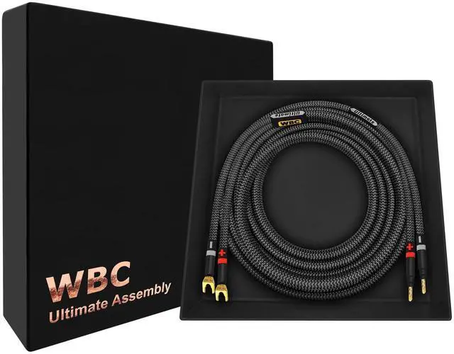 The high-end packaging, makes these a great gift for any Audiophile or Music Lover who will appreciate handcrafted, high quality audio cabling. The braided Tweed cloth jacket and embroidered labeling will compliment your high-end gear quite tastefully; this is truly The Ultimate speaker cable. ^^ At WBC we only use the highest-grade connectors for these audiophile cable assemblies. Eminence 3-micron, 24K Gold plated, audiophile-grade, 4mm (standard diameter) banana plugs with a fully insulated body to prevent accidental shorting & multi-spade connectors, (compatible with 8mm and 6mm binding posts), provide superior abrasion & corrosion resistance and unrivaled performance.