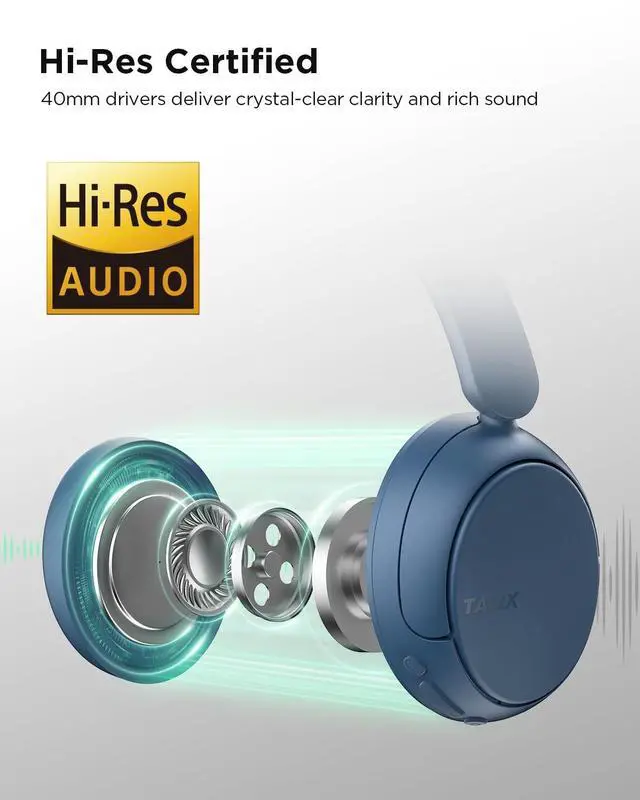 110H Ultra-Long Battery Life Enjoy up to 110 hours of playback on a single charge (65 hours with ANC on). Get up to 4 hours of playtime from just a 5-minute fast charge. Never Stop Listening with USB audio for wired listening. ^^ Hi-Res Certified Audio TALIX H30 wireless bluetooth headphones feature 40mm dynamic drivers that deliver crystal-clear clarity and rich sound. ^^ Bass Boost Mode Feel the deep, resonant bass with enhanced low-frequency response for richer, punchier sound. Perfect for EDM, hip-hop, and bass-heavy tracksdelivering powerful impact and a more immersive listening experience.