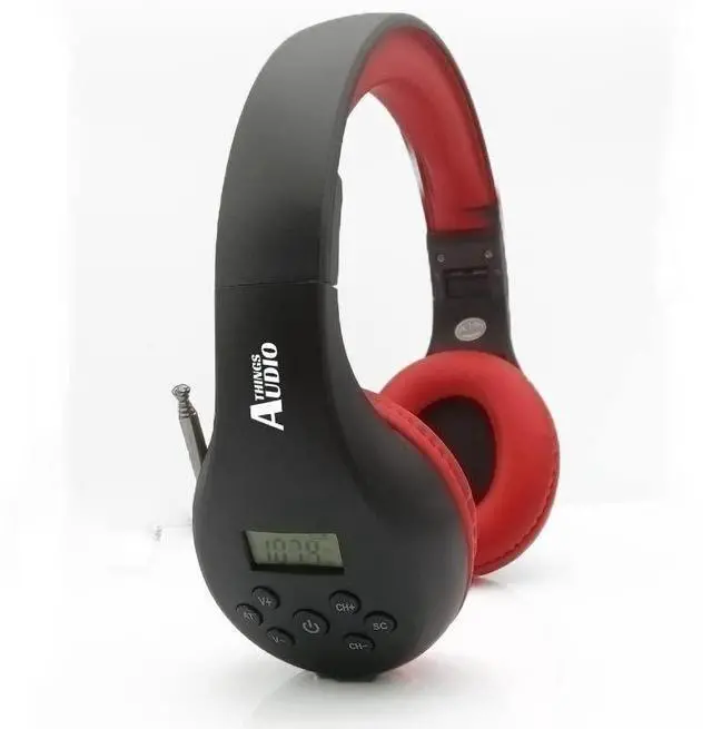 THINGS AUDIO Portable Personal FM Radio Headphones Pull-Out Antenna for Great Reception, Walking, Jogging, Relaxing, School, Talk Radio - Powered by 2AA Batteries (Not Included) (Black & Red)