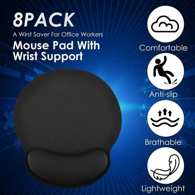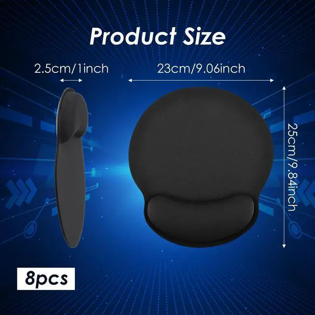 Includes: 8 Pack x Black Ergonomic Mouse Pad with