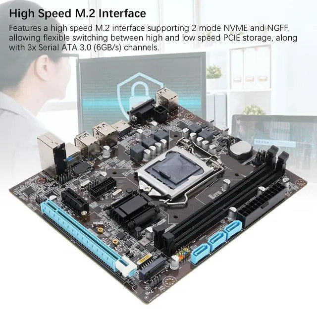 Expansion and Storage Options: The PC motherboard includes 3x Serial ATA 3.0 (6GB/s) ports, 1x PCI Express x16 slot, 1x PCI Express x1 slot, and 1x M. 2 slot supporting NVMe and NGFF interfaces.