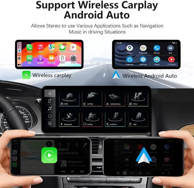 ^^ Dual system, One click switch between Linux system and original car system, The upgraded capacitive touch screen retains all original functions and adds Linux system features, greatly enhancing your experience. This includes the original car radio, amplifier function, factory steering wheel control, original car mouse knob, display speed, fuel level, oil pressure, safety warning, and original reverse camera. No software changes will be made to the vehicle's control unit. ^^ Supports wireless (wired) Apple Carplay, wireless (wired) Android Auto, wireless mirrorlink for iOS and Android phones, Bluetooth, WI-FI.