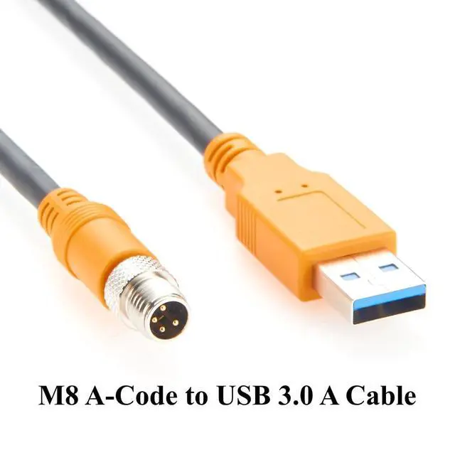 Industrial M8 to USB Industrial USB 3.0 Connection Cable, Compatible With IFM E30136. USB 3.0 A Male Ports, for Connecting peripheral USB devices; M8 A Code 4Pin Male connector for industrial connection, automation equipment, embedded motherboard. ^^ 480Mbps Speed M8 A Code Male to USB A Male Cable, Support data transfer up to 480Mbps, for Reliable Signal Transmission and Fast Parameter Setup. ^^ IP67 Waterproof & Dustproof M8 A Code 4Pin Connector, Threaded coupling, is IP67-rated when mated. providing excellent protection against water, dust, and oil in harsh environments.