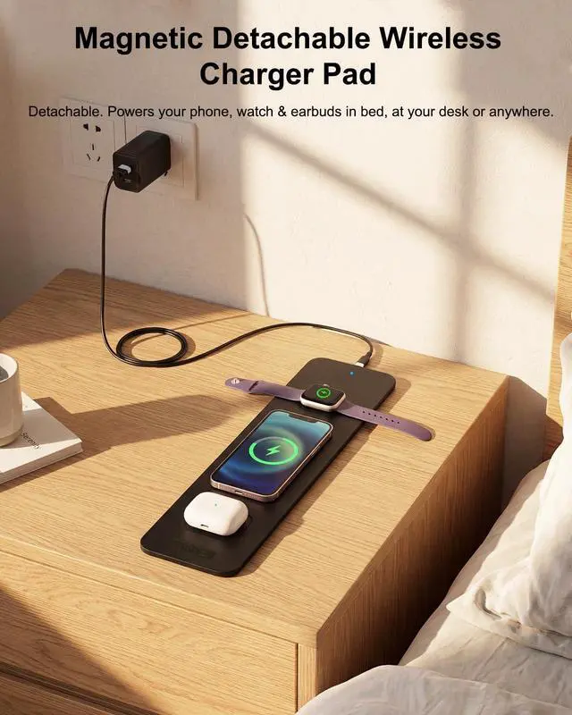 Magnetic Detachable Panel: The waterproof function resists accidental spills and stains from coffee, tea, etc., preventing liquid from seeping inside and affecting charging performance. The magnetically detachable panel can be easily removed for cleaning, making daily maintenance convenient and efficient.