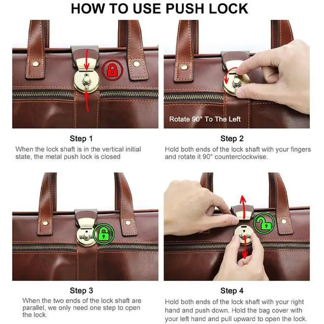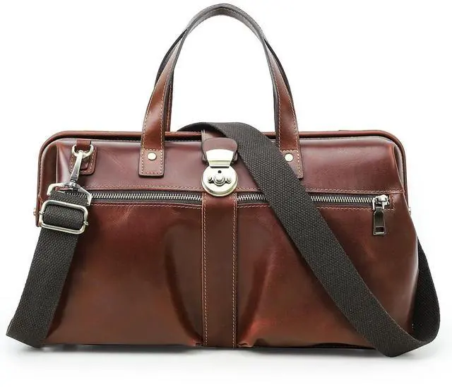 DescriptionDesigned for modern professionals with a taste for timeless style, this mens full grain leather doctor bag combines classic structure with everyday functionality. Inspired by traditional medical bags, it features a wide metal frame opening that stays open when neededno digging, no hassle. Made from carefully selected full grain leather, the bag showcases natural grain patterns and a rich vintage tone, offering both durability and character. The secure metal lock closure adds a refined, professional touch, while protective metal feet ensure the bag stays elevated and protected during daily use.