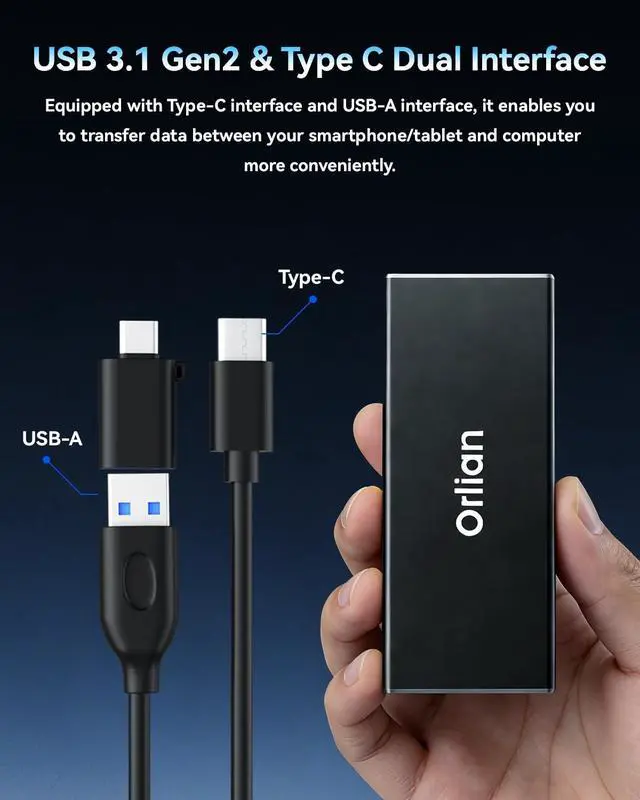 ^^ Wide compatibility: The external SSD can be easily connected to various Type-C devices such as Windows, Mac, iPad Pro, iPhone, and Android devices via USB-C and USB-A interfaces, enabling convenient and fast file transfer.