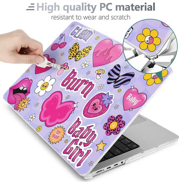 Includes: 1x High-Gloss Hard Case (Top & Bottom), 1x Matching Silicone Keyboard Cover (protects against dust/spills), 1x HD Screen Protector (anti-scratch), and 1x Keyboard cleaner. ^^ "SECOND SKIN" AESTHETIC & 1.2MM SLIM PROFILE Weighing only 280g with a profile of just 1.2 mm, this case adds robust protection without the bulk. The high-gloss, semi-transparent finish creates a premium glass-like look, allowing the Apple logo to subtly shine through the specific pattern, blending technology with art. ^^ PROFESSIONAL HEAT DISSIPATION Designed for the fanless MacBook Pro. The bottom cover features precision-cut ventilation grilles to promote natural airflow and heat release. Four raised anti-slip rubber feet increase desk grip and create an air gap for better cooling performance during long work sessions. ^^ DURABLE & SCRATCH RESISTANT Crafted from high-grade polycarbonate. The snap-on design with non-invasive micro clips makes installation easy and safe (won't scratch your bezel). Effectively protects your device from fingerprints, scrapes, drops, and daily wear while keeping all ports fully accessible.