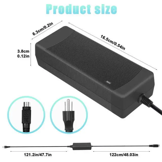 This cable has an output of 54.0V and can deliver a maximum of 1.66A or 90W of power. It has a 4-pin design for connecting to the adapter.