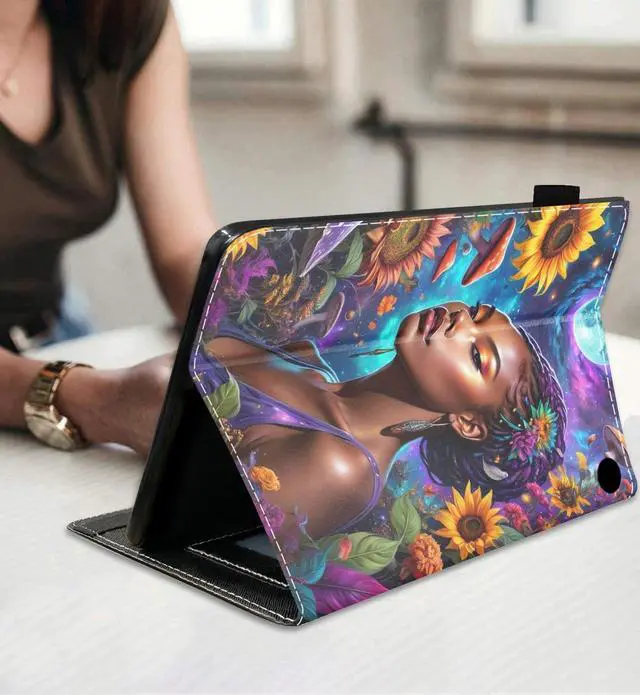 BWOOLL Case for Kindle Fire HD 8/Fire HD 8 Plus Tablet (12th/10th Generation, 2024/2022/2020 Release), Slim PU Leather Stand Cover with Auto Wake/Sleep, American Black Girl