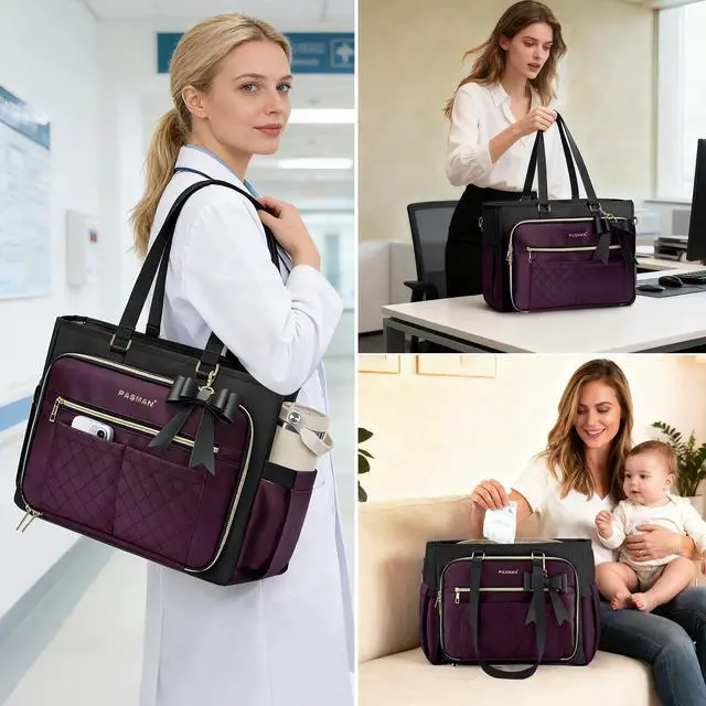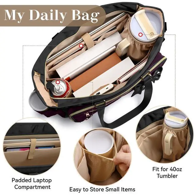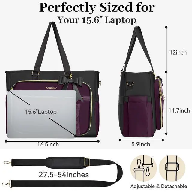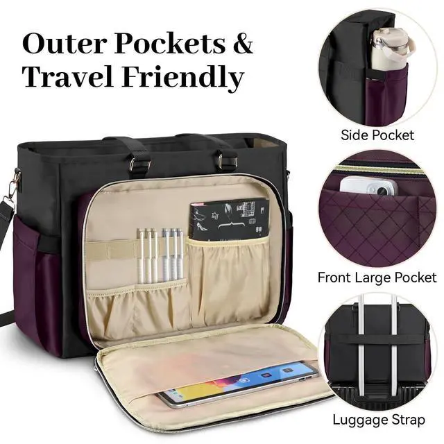 Laptop & Tablet Protection: fits laptops up to 15.6 inches, with additional space for a tablet, mouse, charger, power cord, headphones, and tech accessoriesideal as a laptop work bag for women ^^ Travel, Commute: Structured design helps the bag stand upright and maintain shape, fitting carry-on travel items like passport, boarding pass, toiletries, change of clothes, making it useful as a work tote, travel tote ^^