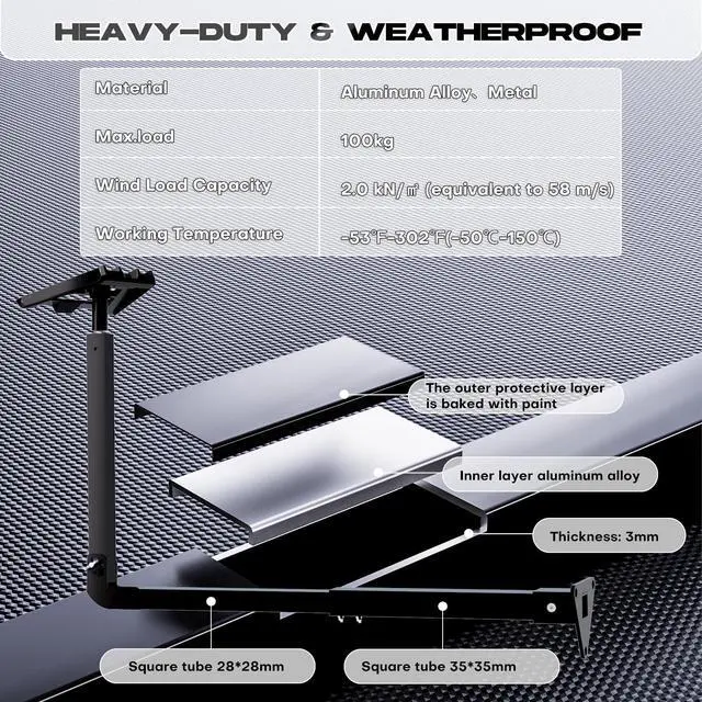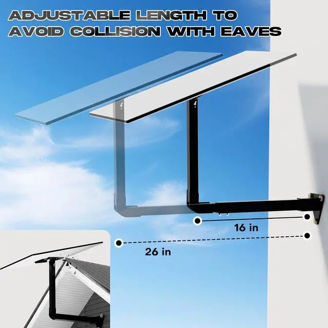 Aluminum alloy Adapter and Structure PFNRTH starlink roof mount uses aluminum alloy adapters and aluminum alloy tubes, which are more sturdy and stable. Long term use and the ability to apply extreme weather conditions. ^^ Adjustable length for long eavesFeatures an extendable arm that reaches up to 26 inches, accommodating various eave widths and installation scenarios. It can effectively prevent the Starlink Gen 3 phased array antenna from colliding with the eaves. ^^ Two angle adjustmentIn order to effectively receive good signals for the Starlink Gen 3 phased array antenna, our Starlink long mount kit is designed with two angle adjustments.