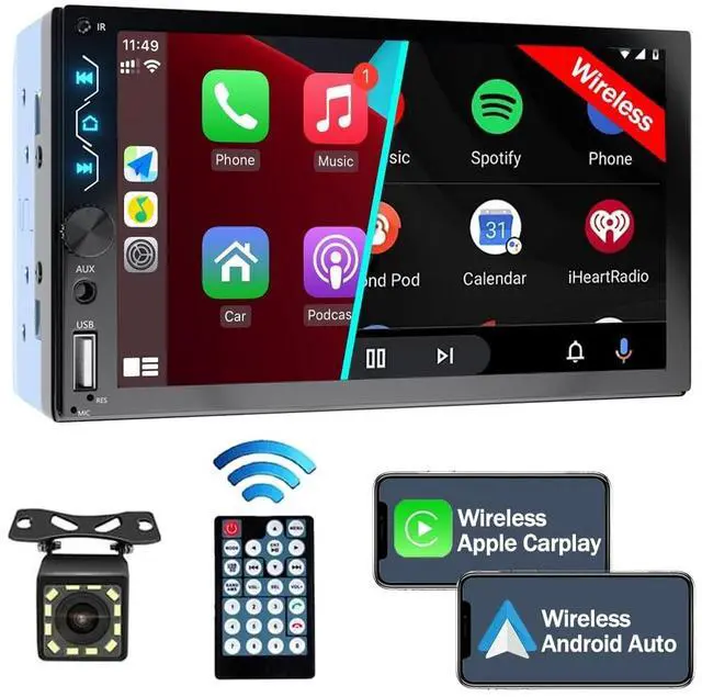 Wired/Wireless Apple Carplay & Android AutoLeadfan 7 inch double din car stereo supports apple carplay and android auto with wireless and wired connection. Simply pair it with your smartphone via Bluetooth and you can use music, GPS navigation map, calls, messages, and also implement voice control! No need USB cable. Someone like to wake up their voice assistant like Siri or Google to make operations, while keeping your hands free for totally safe driving maneuvers! ^^ Mirror Link for Android and iOS SystemThe wireless double din radio support mirror link function for Apple and Android phone.
