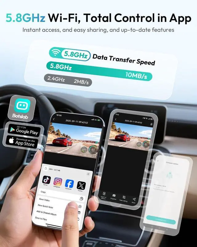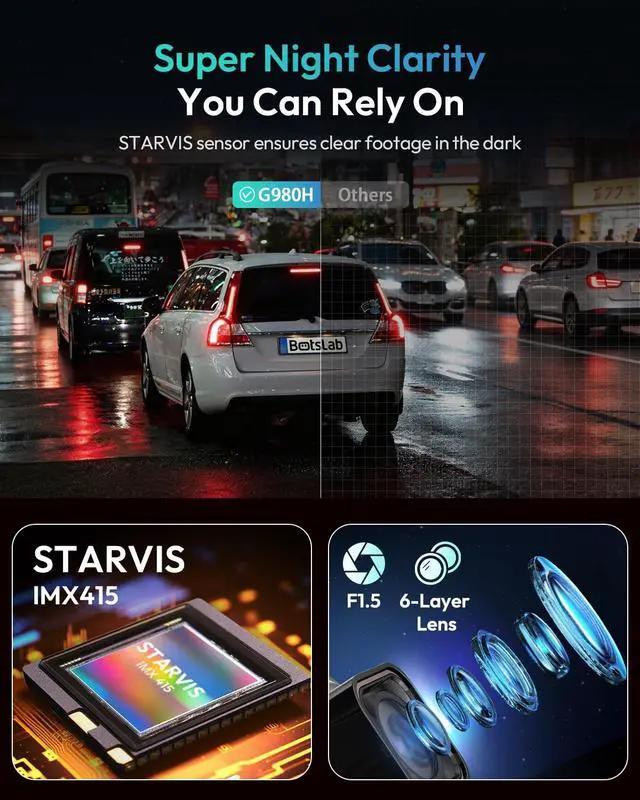 Dedicated hardwire kit required-ASIN: B0DT1633D2. ) ^^ [Expanded Vision & Effortless Setup] Secure expanded vision with up to 6 lanes coverage, utilizing 170 and 150 wide angles for the front and rear dash cameras, respectively. Easy installation process for both front and rear cameras, including a static sticker for a clean setup without residue. In addition to supporting 5.8GH z WiFi connection, G980H dash camera also supports connecting to your APP via Bleutooth. ^^ [Reliable Recording with GPS Integration] The Car Dash Cam provides automatic emergency video locking with G-Sensor during incidents and seamless loop recording for continuous coverage. Built-in GPS integrates with Google Maps, recording your driving path for easy route tracking. The G980H dashcam's display will show your real-time speed, and the recorded video also includes speed records, allowing you to grasp your speed at every moment. ^^ [WDR Wide Dynamic Technology] WDR technology can help your dashcam optimize the image quality in too bright or too dark situations, so that the video recorded by your car camera presents excellent image effects under any circumstances. ^^ [Superior Performance with Super Capacitor] BOTSLAB Dash cameras for cars benefit from enhanced safety and data preservation even during instant power-offs, supported by a supercapacitor and designed for durability with temperature resistance from -20 to 70 and 24/7 parking monitoring capability (*hardwire kit required).