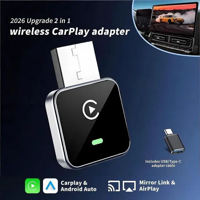 Complete Wireless CarPlay ExperienceEnjoy the full suite of features wirelessly: HD navigation, voice calls, Siri voice control, touchscreen, and steering wheel controls. This apple CarPlay wireless adapter provides the complete, cable-free infotainment experience you love, now with the convenience of wireless connectivity. ^^ Perfect Compatibility This wireless CarPlay adapter is designed for iPhone 6 and later (iOS 10+), delivering flawless performance. it supports both USB Type-A and USB Type-C ports for seamless plug-and-play connectivity. Plus, It works with over 98% of OEM wired CarPlay systems in vehicles from 2016, covering 1500+ models. ^^ Plug & Play, Auto-ReconnectExperience true plug-and-play setup in three simple steps. Once paired, this carplay wireless adapter reconnects automatically every time you start your car, eliminating daily pairing hassles. Say goodbye to tangled cables and enjoy a cleaner, more convenient drive from the moment you turn the key. ^^ Wide Operating Range & Future-ProofBuilt to withstand extreme conditions from -20C to 80C. With its forward-compatible design and online upgrade capability, this wireless carplay adapter is engineered to remain compatible and up-to-date, offering reliable performance through 2026 and beyond. ^^ Industry-Leading Performance With Realtek 8730EPowered by the groundbreaking Realtek 8730E chipsetthe world's first solution custom-built for wired-to-wireless adaptersfeaturing advanced WiFi 6 and Bluetooth 5.3.