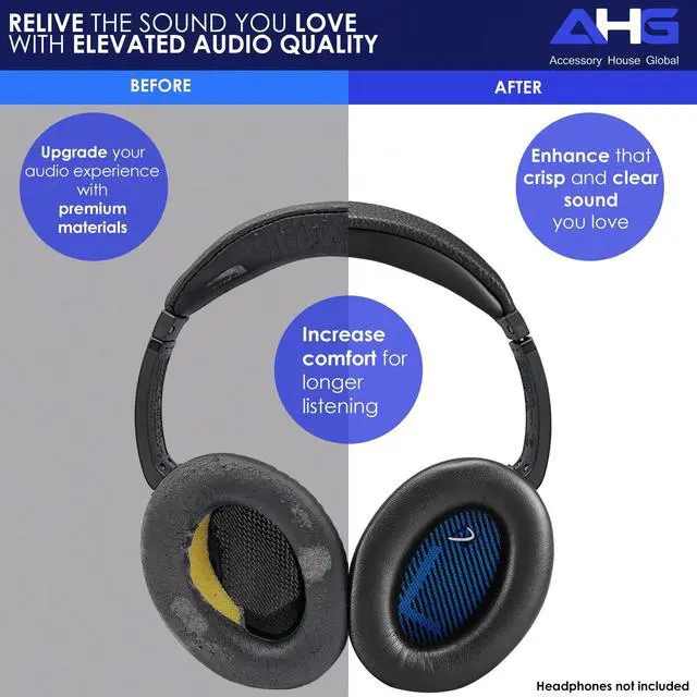 Perfect Compatibility & Stylish Upgrade Your QC2 or QC15 headphones have been loyal companions for over a decadeand now they deserve a little TLC. Give your QuietComfort 2 / QuietComfort 15 headphones a fresh, new look with AHG Accessory House Globals premium replacement QC2 / QC15 EXTRA THICK headband and ear pads. Keep the classics alivewithout breaking the bank. ^^ Make your qc2 / qc15 Headphones great again! Dont let your amazing quietcomfort 2 and 15 headphones fade away. Upgrade and refresh them with these AHG Accessory House Global premium quietcomfort 15 ear pads and QuietComfort 15 headband to restore their performance, so you can experience the brilliance of your music again.