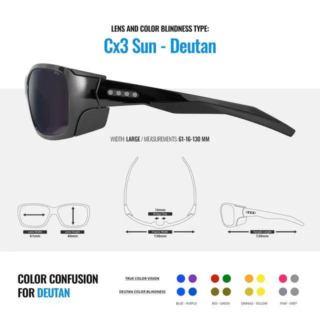 CORRECTS DEUTAN COLOR BLINDNESS: Deutan, the most common type of red-green color blindness, results in more issues with greens than reds. So, EnChromas Outdoor Deutan lens boosts greens and normalizes the red-green ratio making colors more saturated and hundreds of hues visible and distinguishable. If you have Protan color blindness, youll need a frame with our Outdoor Protan lens. ^^