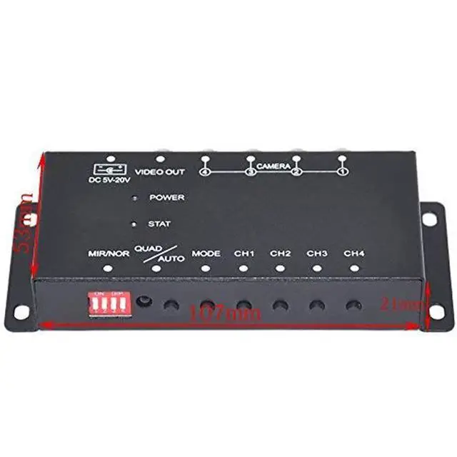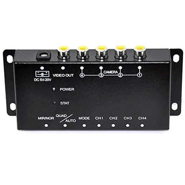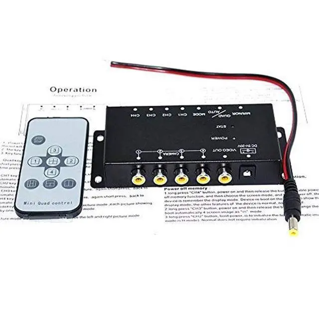Kindly Notes: (1) We don't surggest the switch will be connect wireless camera, and all product can support PAL or NTSC, but don't support PAL and NTSC at the same time. (2) Please select good quality camera to connect. Poor camera can't be identify by control box. (3) When the product ACC on, Your screen is blue, The product will work properly. after you install, your camera don't work, please check your camera's quality and your connection. thanks. Car Camera Video Control Box For Four Channels With Quad Split, With Mirror Switch For Each CameraYou can see 4 camera's images in a same window.