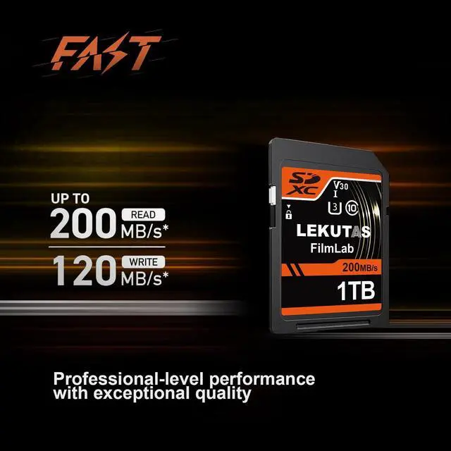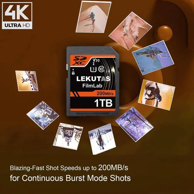 LEKUTAS 1T SDXC UHS-I Memory Card - Up to 200MB/s Read Speed, C10, U3, V30, 4K UHD, Full-HD & 4K Video SD Card for Canon Nikon Sony Fujifilm DSLR, Mirrorless Cameras