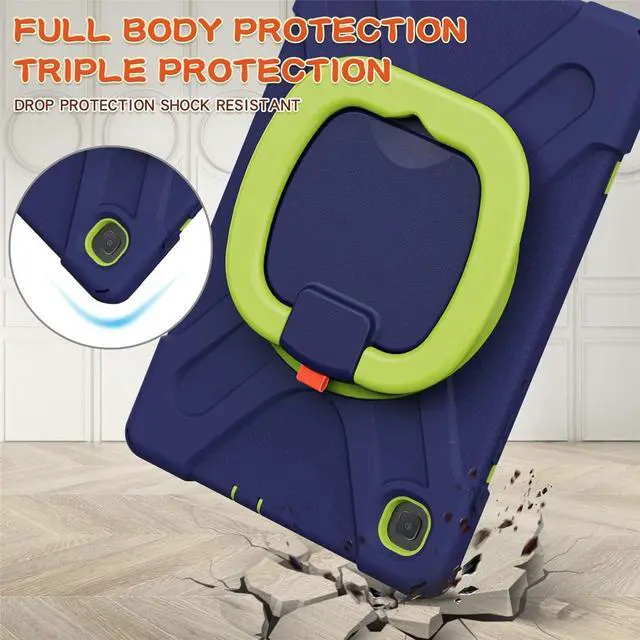 360 Rotation Case for Samsung Galaxy Tab S6 Lite 10.4" Sturdy Cover Rotate Ring Stand Shoulder Carrying Strap Hand Strap Rugged Children Adults Outdoor Case (Navy+Green)