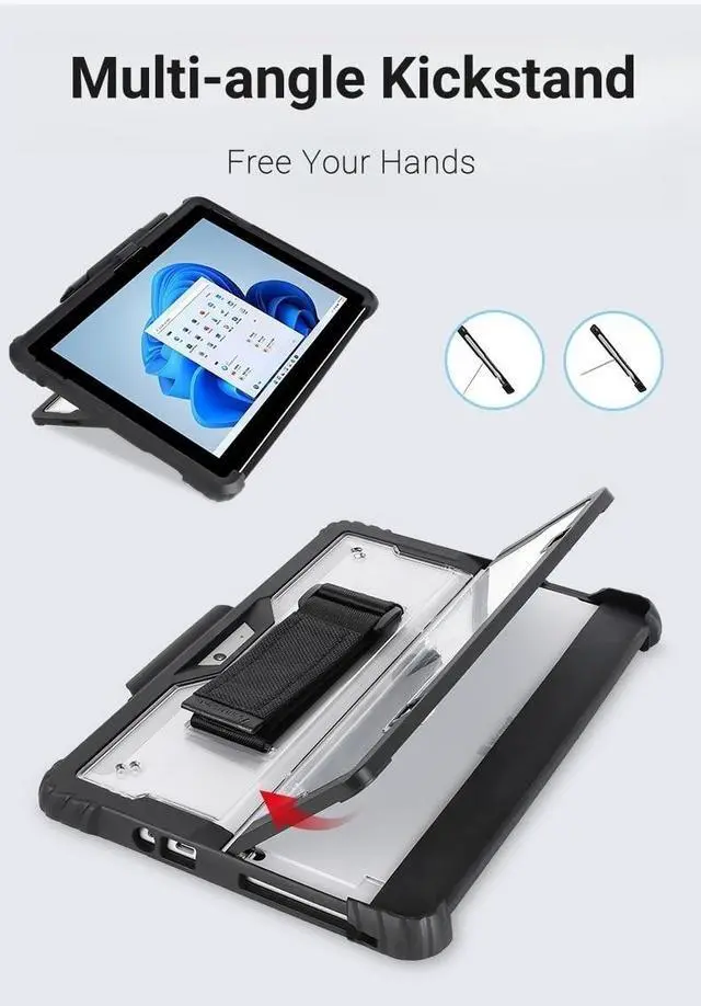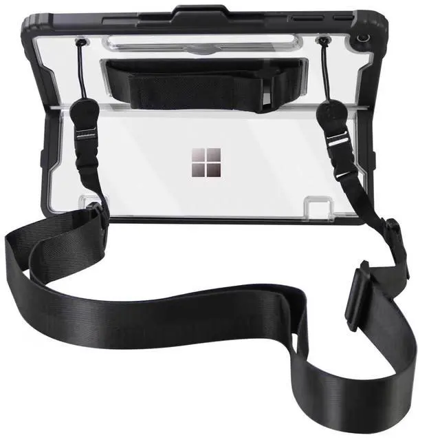 Surface Pro11 Pro10 Pro9 Tablet Protective Case 13 inches with Shoulder Strap, Hand Strap, Stylus Pen Holder, Rugged, Shock-Absorbing and Drop-Resistant, Transparent Black, Heavy duty Back Cover