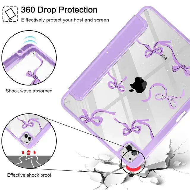 May Chen Case for iPad Pro 11-Inch M5/M4 2025/2024 (6th/5th Generation), Clear Transparent Print Back Shell Slim Stand Shockproof Tablet Cover, Auto Wake/Sleep, Purple Bows